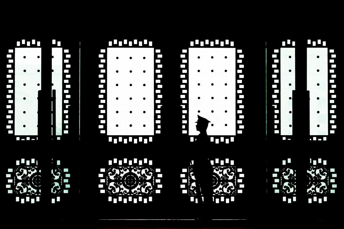 A Chinese soldier stands guard in Beijing on April 23, 2013. Andy Wong/POOL/AFP via Getty Images