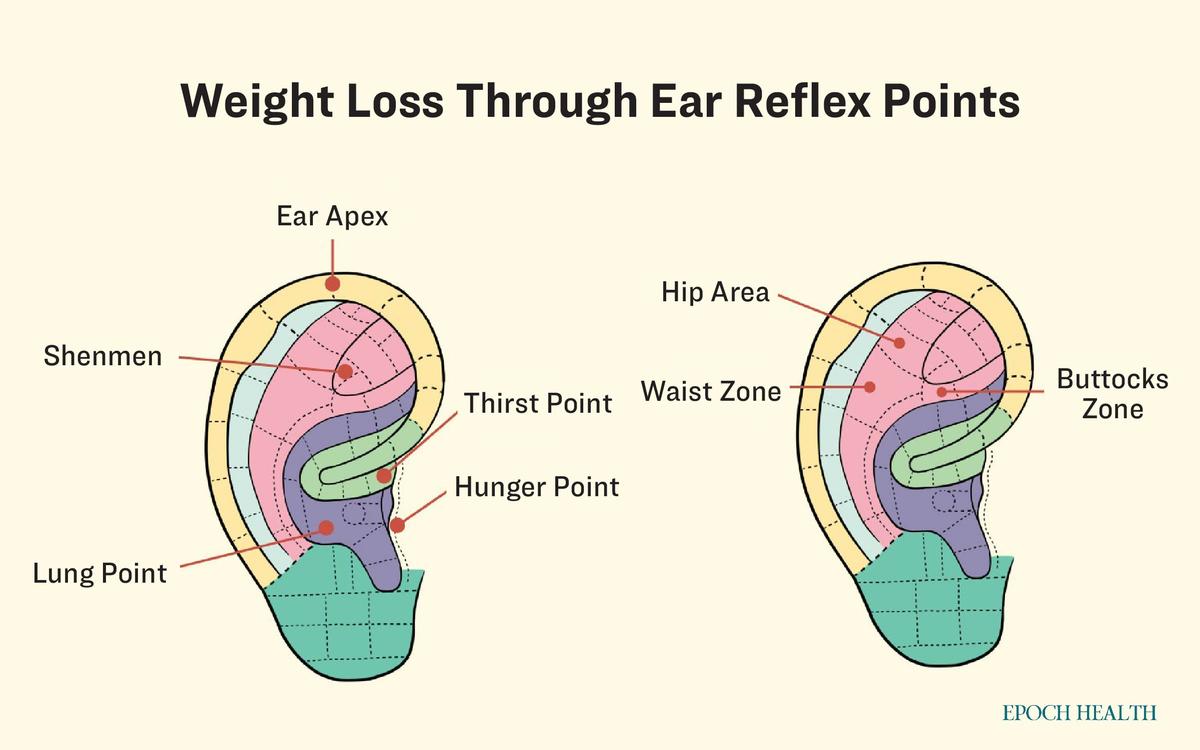 Ear massage is a simple and accessible method to curb appetite, Wu noted. One easy technique involves placing the index finger inside the ear, gently pushing the tragus outward, and using the thumb to rub back and forth—stimulating the hunger and thirst points.
