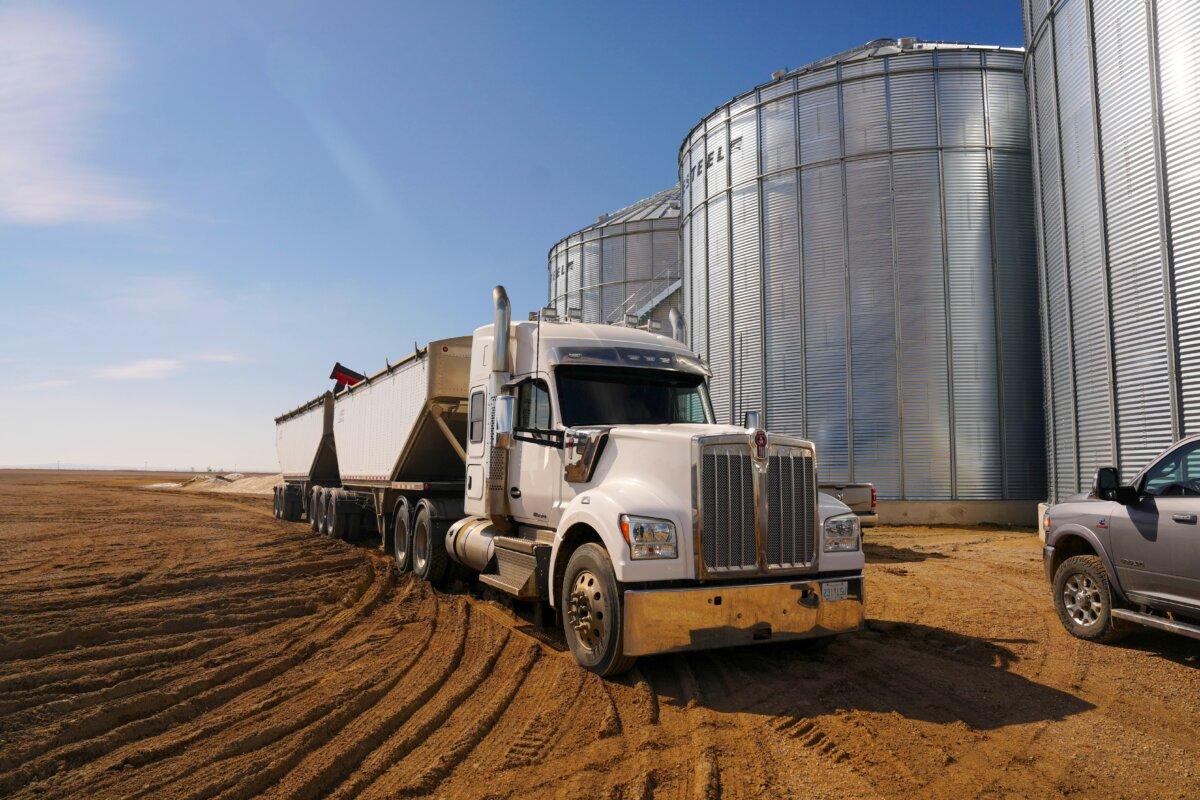 Canola is loaded on to a truck on a farm outside of Moose Jaw, Sask., on April 7, 2025. The Canadian Press/Chris Young