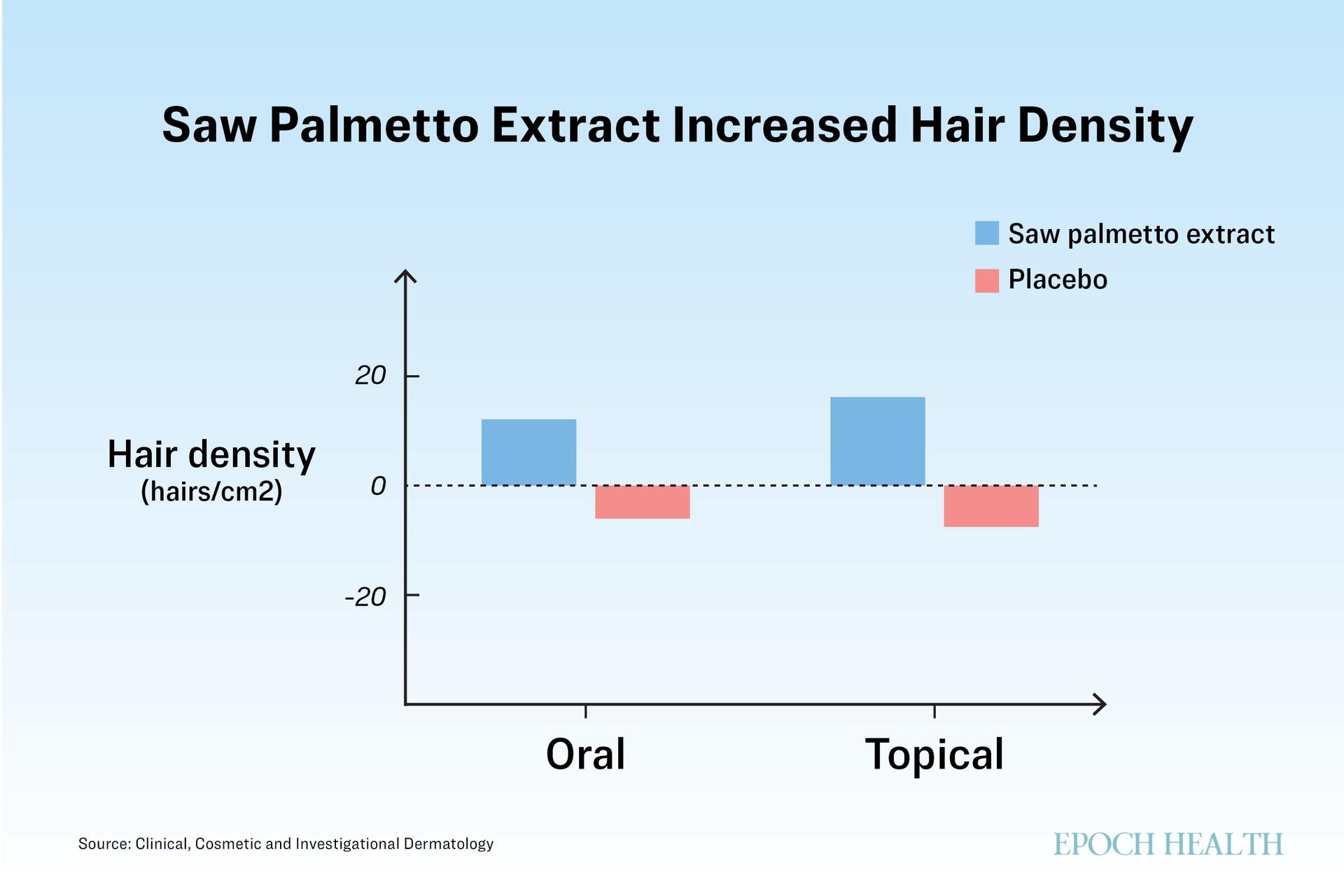 The analysis reported a 60 percent improvement in hair quality, a 27 percent increase in total hair count, and increased hair density in more than 80 percent of participants. Saw palmetto was also well tolerated and not associated with serious side effects.